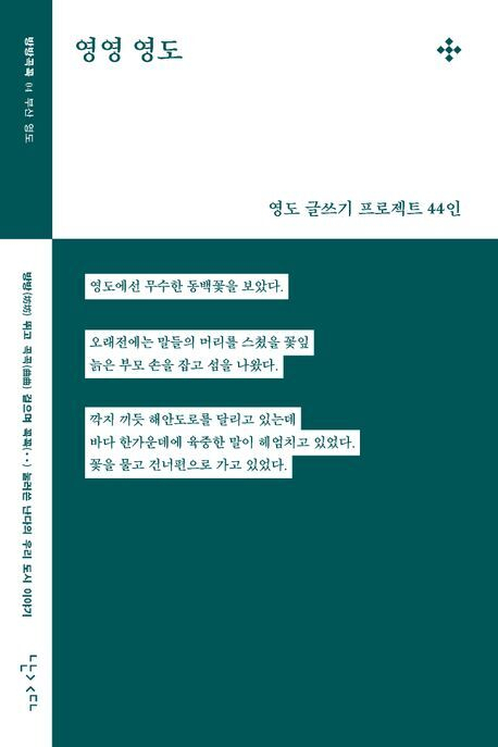 김민정·오은·박준·안희연·신용목·박연준 총 여섯 명의 시인이 글쓰기 강연을 하였고, 전국 방방곡곡에서 영도를 찾았다. 마흔네 사람이 방방 뛰고 곡곡 걸으며 찾은 각자의 영도 이야기. 저마다의 영도를 건너갔다 건너오며 저마다의 영도를 말하는 마흔네 편의 글을 한 권에 엮게 되었다. 영도 글쓰기 프로젝트 44인 지음/난다/316쪽/1만 8000원.