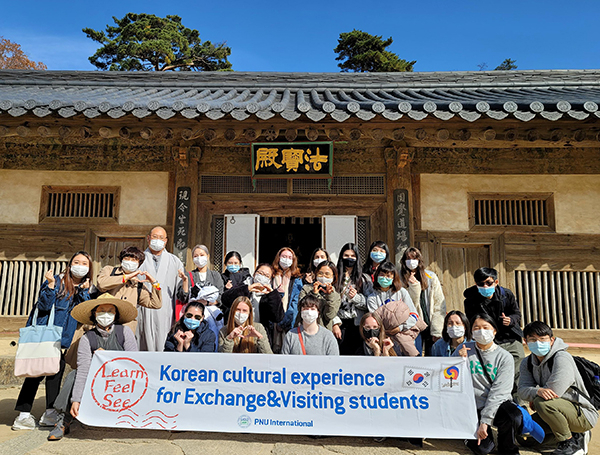 부산대에는 현재 국내 대학 중 최다인 92개국에서 2000여 명의 외국인 학생들이 머물며 공부하고 있다. 문화체험 참가 학생들은 한국의 대표 사찰인 합천 해인사를 방문해 팔만대장경을 관람한 데 이어 스님의 법문을 듣고, 108배와 염주 만들기 등 다양한 문화활동과 한국을 배우는 체험을 했다. 이날 행사는 코로나19 상황을 감안해 최소한의 인원(18명)으로 진행했다.