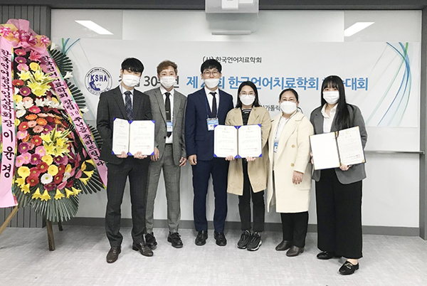 학술대회 논문발표에서 황현주, 조명희, 정석연, 강호곤 대학원생과 김효정 교수(언어치료학과 학과장), 이춘애 원장(아름다운언어심리센터)이 함께 ‘언어발달 중재기법에 대한 언어재활사의 인식조사’라는 연구로 우수논문상(포스터발표)을 수상했다.