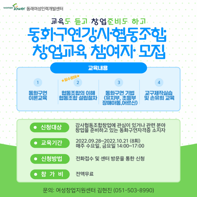 동래여성인력개발센터, ‘동화구연강사협동조합창업교육’ 참여자 모집