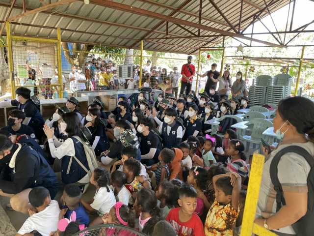 동아대 필리핀 해외봉사단 필리핀 클락 지역에서 한글교육 등 봉사활동을 진행한 모습