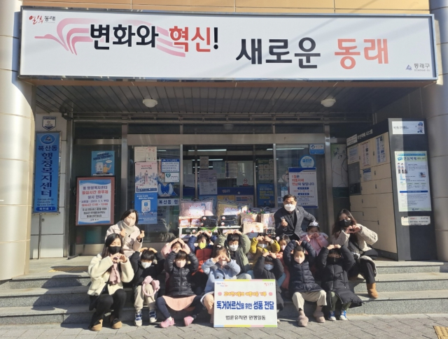 동래구 복산동(동장 황인재)에 위치한 법륜유치원(원장 오혜순) 원생들이 지난달 31일 관내 홀로 사는 어르신들을 위해 90여만 원 상당의 물품을 구매하여 기탁, 배달하는 행사를 가졌다.