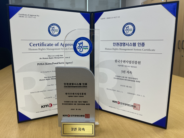 한국우편사업진흥원(원장 민재석)은 한국경영인증원으로부터 3년 연속 ‘인권경영시스템 인증’을 획득했다고 밝혔다.