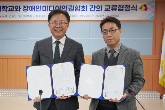 고신대학교(총장 이병수)는 장애인미디어인권협회(협회장 황범선)와 지난 9일 교류협정을 체결했다. 고신대학교는 장애인 일자리 창출, 장애인 경제적 자립자활을 지원하고 장애인미디어인권협회는 학교홍보 및 후원 협력 활동을 지원, 상호 발전을 도모하며 협력하기로 했다.