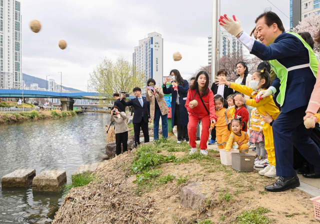 연제구(구청장 주석수)는 제31회 세계 물의 날을 맞아 3월 22일 온천천 시민공원에서 자연보호연제구협의회 회원, 어린이 등 80여 명이 참석한 가운데 친환경 흙공 던지기 행사를 개최했다.