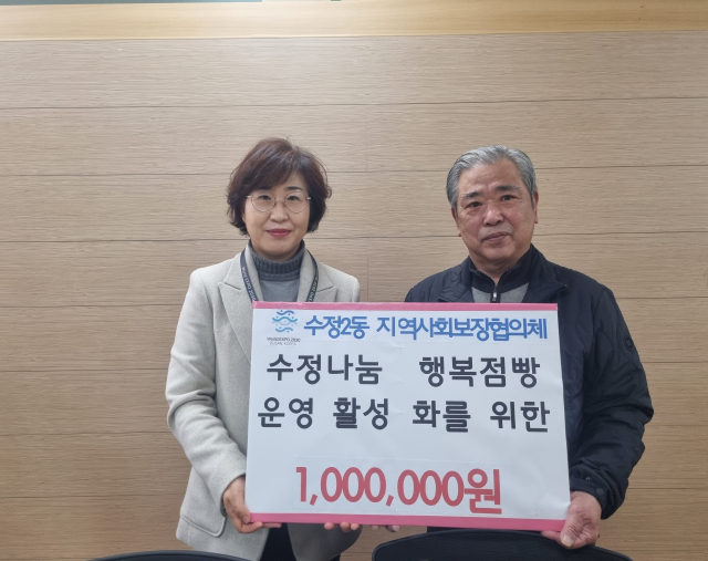 수정2동 지역사회보장협의체, 동네 복지 해결을 위해 100만원 기부