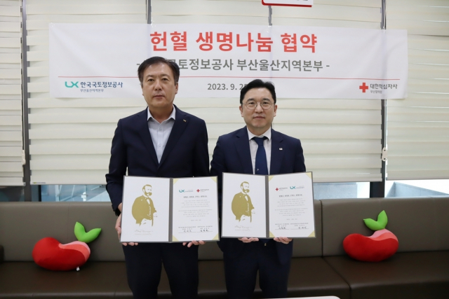 한국국토정보공사(이하 LX) 부산울산지역본부(본부장 박관식)는 대한적십자사 부산혈액원(원장 김봉균)과 헌혈 생명나눔 협약(MOU)을 체결했다고 27일 밝혔다.