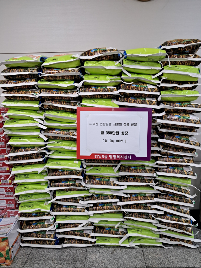 부산연탄은행(대표 강정칠)은 지난 20일 범일5동행정복지센터에 양곡 10kg 100포(350만원 상당) 성품을 기탁했다.