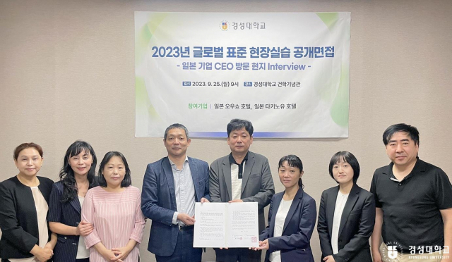 한편 지난 25일 일본 오우쇼 호텔 시부야 후미에 대표와 타키노유 호텔 야마구치 아츠시 대표는 경성대 건학기념관을 방문하여 글로벌 표준 현장실습에 지원한 학생들을 대면하여 면접을 진행했다. 이번 심층 면접을 시발로 두 대표와 경성대 LINC 3.0 사업단은 내달 호텔 분야뿐만 아니라 외식 서비스, 노인 간호 등 사회 복지 분야까지 확대하여 2차 선발을 진행하기로 협약했다.