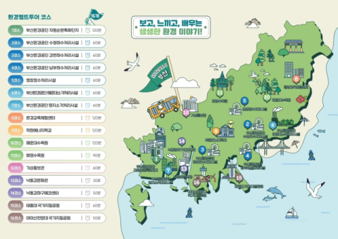 총 16개 코스로 운영되는 이번 환경벨트투어는 학생, 시민들에게 부산의 환경을 직접 보고 느끼고 배울 수 있는 오감체험형 환경교육의 기회를 제공한다.