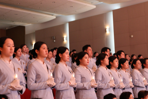 선서식에서 간호학과 2학년 142명의 학생은 임상실습을 앞두고 나이팅게일의 희생과 숭고한 간호 정신을 본받아 타인을 위해 사랑과 봉사로 헌신하는 전문의료인이 될 것을 엄중히 선서했다.