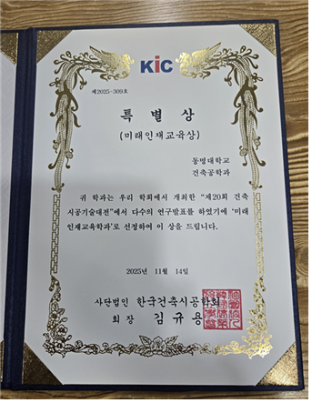 동명대 건축공학과, 제20회 건축시공기술대전 ‘미래인재교육상’ 수상