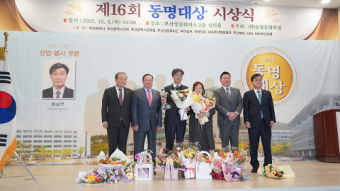 제16회 동명대상(산업·봉사부문) 시상식이 4일 부산상공회의소에서 각계 주요 인사들과 학교법인 동명문화학원 강경수 이사장, 동명대 이상천 총장 등의 뜨거운 축하 속에 성황리에 개최됐다고 밝혔다. 영예의 수상자 정성우 ㈜지맥스 대표이사는 포상금으로 2000만 원을 받았다.