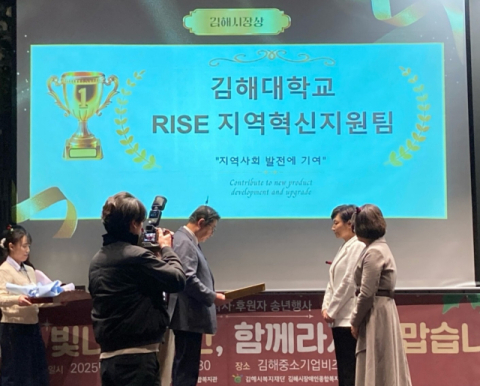 김해대학교(총장 편금식)는 지난 5일 열린 ‘2025 자원봉사자·후원자 송년행사’에서 RISE지역혁신지원팀이 지역사회 공헌 활동 성과를 인정받아 표창장을 수상했다고 밝혔다.