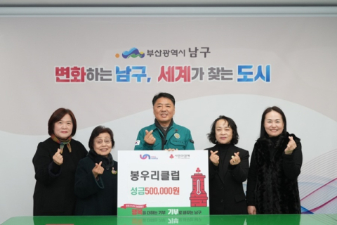 봉우리클럽(회장 최영실)은 9일 부산 남구(구청장 오은택)에 「희망 2026 나눔 캠페인」의 일환으로 성금 50만 원을 기부했다고 밝혔다.