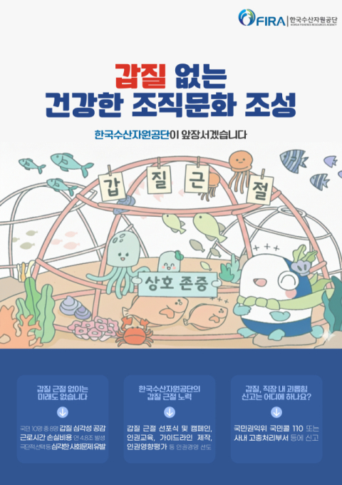 한국수산자원공단 감사법무실 권지영 주임은 “갑질은 단순한 개인의 일탈을 넘어 조직 전체의 신뢰를 무너뜨리는 행위”라며 “현장의 목소리에 귀 기울여 갑질을 유발할 수 있는 잠재적 요인을 선제적으로 관리하여, 국민이 체감할 수 있는 변화를 만들어 가는 데 앞장서겠다”고 전했다.