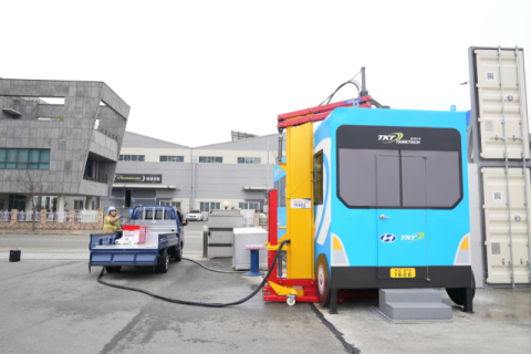 부산소방재난본부(본부장 김조일)는 10일 부산 강서구 녹산에 위치한 탱크테크㈜에서 전기버스 화재진압장치 시연회를 열고, 도입을 앞둔 장치의 현장 적용성과 대응 효과를 최종 점검했다고 밝혔다.