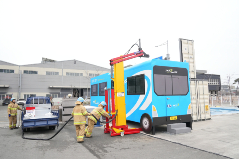 부산소방, 전기버스 화재진압장치 현장 시연회 개최
