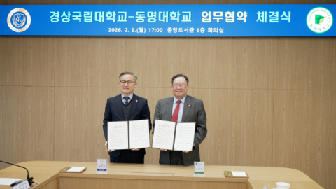협약식은 경상국립대 가좌캠퍼스에서 진행됐으며, 동명대 이상천 총장을 비롯해 변윤희 교무처장, 박현정 사무처장, 이광국 캠퍼스공간혁신본부장, 김도경 반려동물대학장 등 양 대학 주요 관계자들이 참석해 협력 의지를 다졌다.