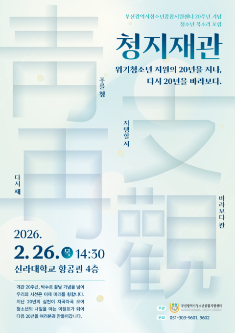 ‘청소년의 삶을 지탱해 준 20년을 지나, 다시 20년을 바라본다’는 의미를 담은 이번 행사는 지난 20년간 위기청소년 지원의 현장에서 쌓아온 성과를 돌아보는 동시에, 급변하는 사회 환경 속에서 청소년 정책과 지원 체계가 나아갈 방향을 청소년 당사자와 함께 모색하는 자리다.