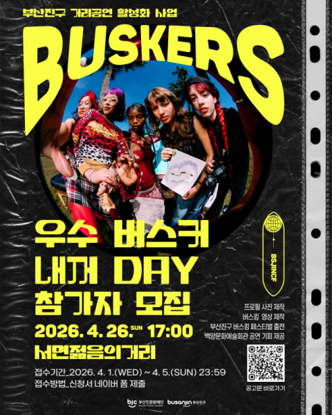 참가 신청은 네이버폼을 통해 접수하며, 1차 서류심의를 거쳐 본선 무대에 오를 7개 팀이 최종 선정된다. 선정된 팀은 오는 4월 26일 오후 5시, 서면 젊음의거리에서 개최되는 ‘우수 버스커 내꺼 DAY’본선 무대에 올라 시민들을 대상으로 버스킹 공연을 펼치게 된다.