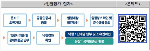 캠코의 압류재산 공매는 온비드 홈페이지 또는 온비드 앱을 통해 시간과 장소에 제약 없이 편리하게 입찰 가능하며 공매 진행 현황, 입찰 결과 등 全과정이 투명하게 공개된다. 또한, 각 차수별 1주 간격으로 입찰이 진행되고, 유찰될 경우 공매예정가격이 10% 차감된다.