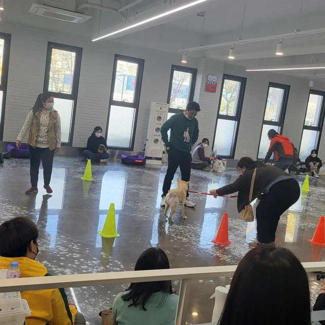 다른 대학과 차별화된 부산경상대학교 반려동물보건과의 실제 강아지로 수업하고 있는 모습. 부산경상대 제공