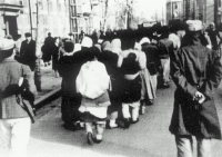 1950년 10월 12일 서울에서 어린아이들이 엄마의 등에 업힌채 형무소로 끌려가는 모습. 이 사진은 국제적십자단이 촬영한 것으로 본보가 스위스 제네바에 있는 국제적십자 본부 기록보관소에서 찾아낸 것이다.한국전쟁 당시 정부의 학살행위는 미군 정보보고서에 'wholesale execution'(대량 학살)이란 단어가 등장할 정도로 매우 광범위하게 이뤄졌다.