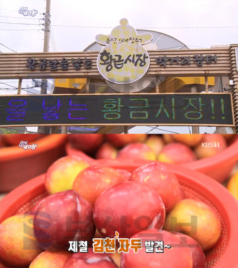 이날 방송에서는 김천자두·거봉포도·과일(수진상회), 채소(유일식품), 민물붕어 어탕국수&메밀묵밥(은양식당), 꼬마김밥(자두김밥), 지례 흑돼지&숯불돼지갈비(삼삼숯불갈비), 이운형 명인 방짜유기(김천방짜유기공방) 다양한 등 먹거리와 생필품, 농산물, 수산물 재료를 파는 다양한 상점들의 모습이 소개됐다.