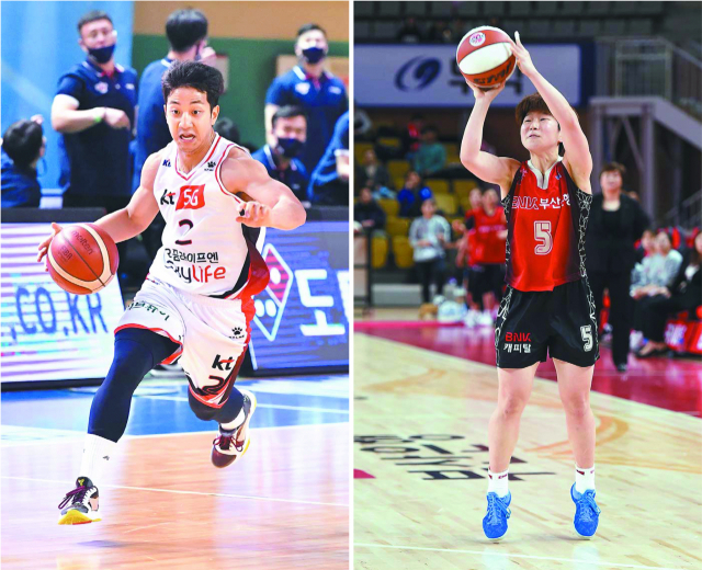프로농구 부산KT와 부산BNK가 좋은 성적을 거두려면 두 간판스타 허훈과 안혜지의 활약이 필요하다. 지난달 군산월명체육관에서 열린 2020 MG새마을금고 KBL컵 대회의 허훈(왼쪽)과 지난 시즌 경기 중인 안혜지. KBL·부산BNK 썸 제공