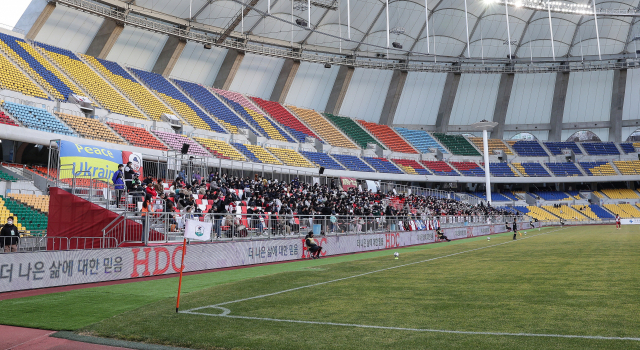 프로축구 부산아이파크가 5일 아시아드주경기장에서 대전하나시티즌과 2022 K리그2 홈 개막전을 가진 가운데 국내에서 피치와 가장 가까운 가변석이 첫 선을 보였다. 부산은 대전과 1-1로 비겨 시즌 개막 이후 3경기(2무 1패)에서 아직 첫 승을 올리지 못하고 있다.