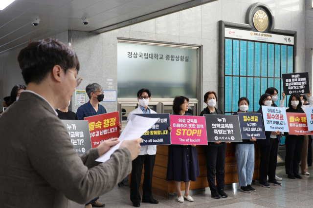 한편 이날 교수재의원회와 대학평의원회에 앞서 경상국립대 의대·병원 비상대책위원회는 가좌캠퍼스 대학본부에서 집회를 열고 정부의 의대 정원 증원 방침 철회를 요구했다.