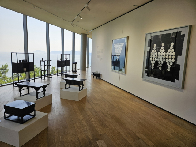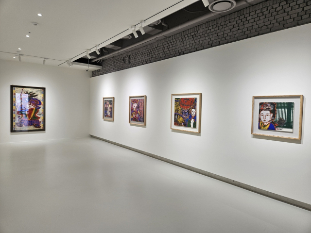 박 작가의 알록달록한 그림과 묵직한 맛이 있는 재현 고가구가 묘하게 대비되며 매력적인 공간 디자인이 완성되었다. 박생광 작가 전시는 30일까지이며 공행재 작가 전시는 7월 2일까지 열린다.