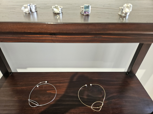 RAC의 다른 공간은 ‘월간 크래프트’라는 프로젝트로 매월 공예 작가 작품을 선보인다. 첫 주자는 부산의 금속 공예 작가인 공행재다. 공 작가는 구름 브로치 시리즈, 보석 사탕반지 시리즈 등이 유명하며, 이번 전시에선 기존 금속 공예 작품 외에도 한지를 활용한 새 작품들도 내놓았다. 한지를 꼬거나 뭉친 후 가볍게 붓 터치로 마무리했다.