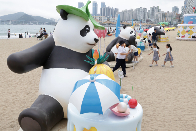 지난 7일 휴일을 맞아 부산 광안리해수욕장을 찾은 시민들이 ‘바오패밀리’ 캐릭터존에서 즐거운 시간을 보내고 있다. 수영구청에서 에버랜드와 협력해 설치한 캐릭터존은 다음 달 31일까지 운영된다. 정대현 기자 jhyun@