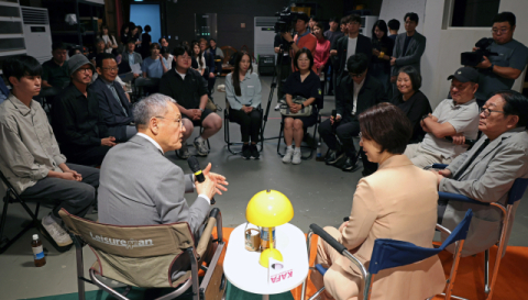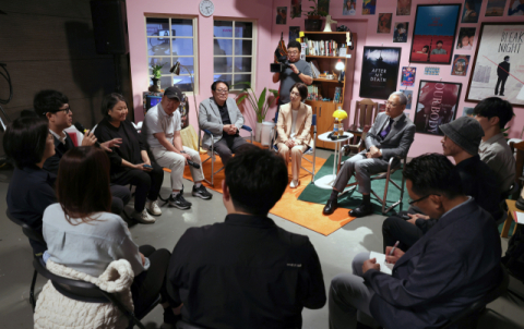 유인촌 문화체육관광부 장관이 19일 부산 수영구 한국영화아카데미에서 부산 지역 영화인들과 이야기를 나누고 있다. 문체부 제공