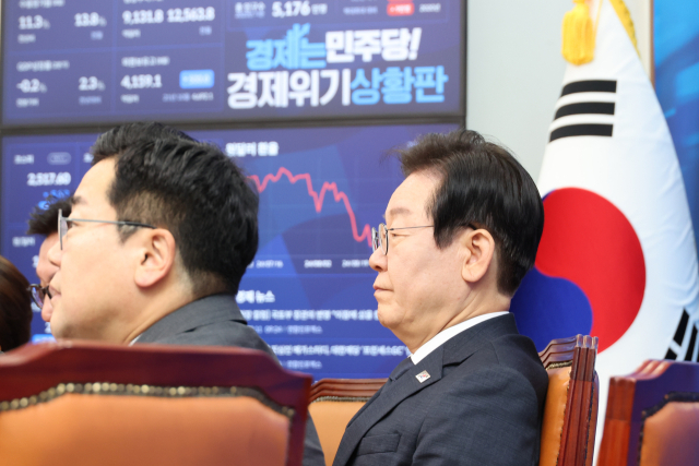 더불어민주당 이재명 대표가 11일 오전 국회에서 열린 최고위원회의에서 박찬대 원내대표의 발언을 듣고 있다. 연합뉴스