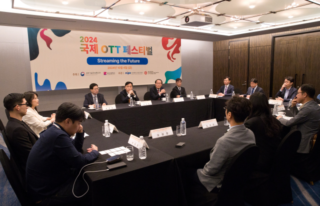 강도현 과학기술정보통신부 제2차관이 4일 오후 부산 해운대구 파라다이스호텔에서 열린 '제2회 국제 OTT 페스티벌 개막식’에 앞서 이준승 부산시 행정부시장 및 OTT 기업대표들과 간담회를 하고 있다. 과기정통부 제공