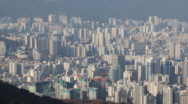 황령산에서 바라본 부산 연제구와 동래구 일대 아파트 단지 모습. 정종회 기자 jjh@