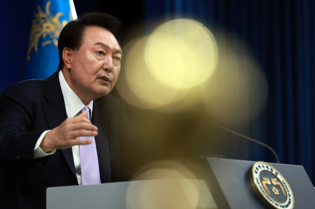 윤석열 대통령이 7일 오전 서울 용산 대통령실 청사 브리핑실에서 '대국민담화 및 기자회견'을 하고 있다. 연합뉴스