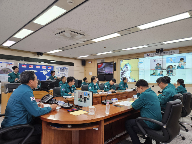 강도형 해양수산부 장관이 9일 오후 8시 정부세종청사에서 제주 비양도 북서방 약 12해리 해상에서 침몰한 대형선망 135금성호 피해자 신속 구조를 위한 상황점검회의를 주재하고 있다. 해수부 제공