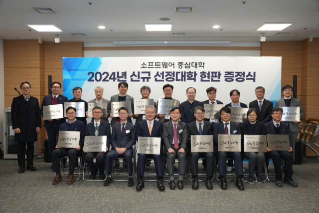 이번 현판증정식에는 ‘2024년 SW중심대학’에 새로 선정된 17개 대학 총괄책임교수들과 주요 내빈들이 참석해 사업 비전과 추진 계획을 공유하고, 성공적인 수행을 다짐하는 자리로 마련됐다.