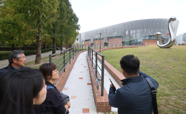 부산시민공원 내에 건축된 ‘부산콘서트홀’이 높은 경사와 담장, 펜스 등으로 인해 공원과 연계성이 떨어지고 있다. 이재찬 기자 chan@