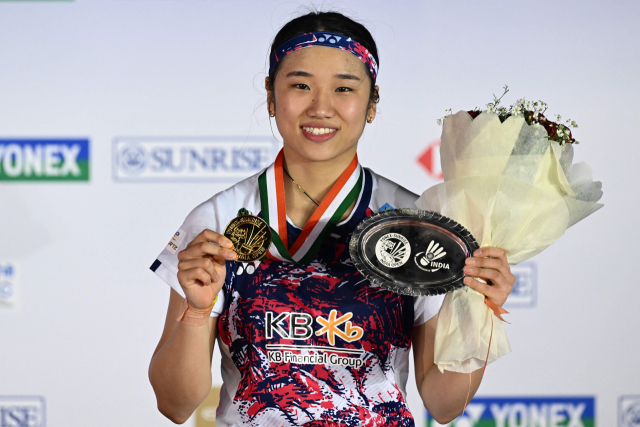 인도오픈 배드민턴 여자 단식에서 우승한 안세영. AFP·연합뉴스