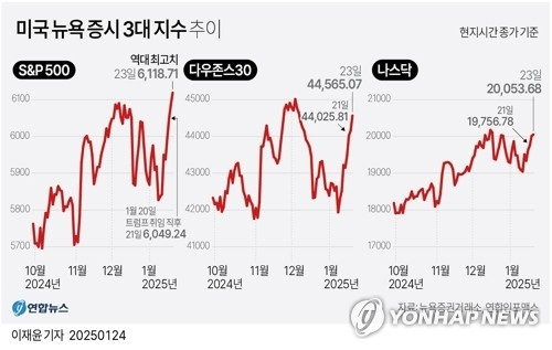 23일(현지시간) 뉴욕증시에서 S&P 500은 전장보다 32.34포인트(0.53%) 오른 6118.71에 마감했다. 이로써 지난해 12월 6일 이후 한달여 만에 종가 기준 최고치를 다시 경신했다.