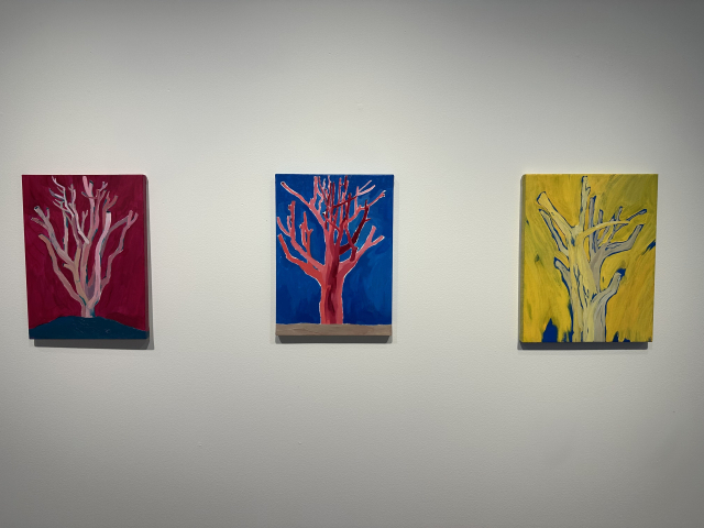 같은 유화 작품인데도 문지영 작가 작품은 오일을 듬뿍 사용해 훨씬 가벼운 느낌이 난다. 문 작가는 ‘나무’ 시리즈를 새로 시작했다. ‘나무가 된 여자(들)’와 ‘살갗은 나무’ 등이다. 문 작가를 설명하는 장애, 여성, 가족, 돌봄 키워드도 더 단단해지고 있다. 그에게 나무는, 단단한 뿌리로 연결된 공동체적 존재이면서도 끊임없이 성장하는 생명력을 지닌 존재다. 문 작가는 이러한 나무의 특성을 통해 여성의 강인함과 연대, 지속적인 변화를 형상화한다고 전했다. 이화여대 정치학과를 졸업한 뒤 부산대 미술학과 서양화 전공으로 편입해 졸업하고, 동 대학원을 마쳤다. 현재 청주미술창작스튜디오 입주 작가이다.