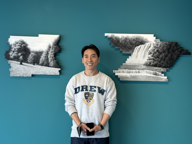 문준호 작가와 작품 '랜드스케이프'(2025). 김은영 기자