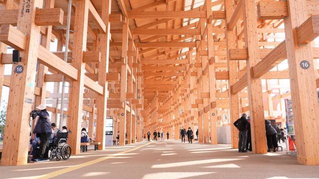 오사카 엑스포를 상징하는 원형 목조 건축물인 ‘그랜드 링’.