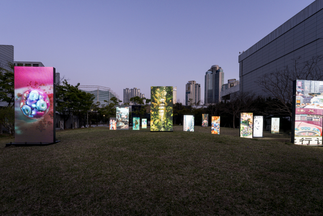 부산시립미술관 야외 조각공원에 전시 중인 '디지털 서브컬처' 전경 사진. 부산시립미술관 제공