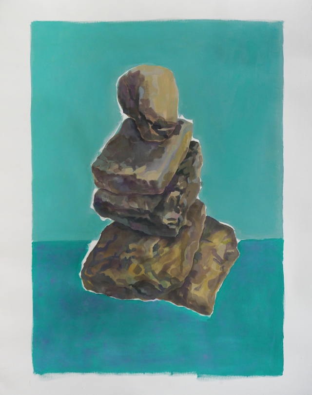 문지현_돌떡(묵직하지 않은), 2025, 캔버스천 위에 아크릴, 104.6x84.2cm (90.3x65.2cm). 허먼갤러리 제공